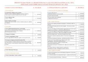 La Diocesi di Pescia ha reso noto il rendiconto relativo all’erogazione delle somme ricevute dalla Conferenza Episcopale Italiana (CEI), ai sensi dell’art. 47 della legge 222/1985, per l’anno 2024. Si tratta dei fondi derivanti dalle scelte dei contribuenti che destinano l’8 per mille del gettito IRPEF alla Chiesa cattolica, finalizzati a sostenere attività di culto e pastorale, opere di carità e la conservazione del patrimonio ecclesiastico. Per l’anno 2024, la diocesi ha ricevuto dalla CEI poco più di un milione di euro, suddivisi in due principali capitoli di spesa: esigenze di culto e pastorale e interventi caritativi. Per quanto riguarda l’esigenze di culto e pastorale, sono stati impiegati 516.338,46 euro, destinati a: manutenzione delle chiese esistenti, rimborso dei mutui per la costruzione di nuove chiese, restauro dei beni culturali, sostegno alle attività della Curia diocesana, iniziative pastorali a livello parrocchiale e diocesano, attività missionarie, di catechesi e di educazione cristiana. Il secondo capitolo, invece, riguarda interventi caritativi, dove sono stati destinati 491.208,52 euro, utilizzati per aiutare le persone più bisognose, attraverso: l’azione diretta della Caritas diocesana e il supporto alle attività caritative delle singole parrocchie su tutto il territorio diocesano