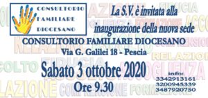 Sabato 3 Ottobre alle ore 9,30 si terrà l’inaugurazione del nuovo Consultorio Familiare Diocesano, che ha trovato sede presso il Centro Famiglia “Amoris Laetitia”, posto in via Galileo Galilei 18 a Pescia. Dopo alcuni anni in cui questo servizio aveva visto diminuire la sua attività, riparte con una équipe arricchita di nuove competenze e professionalità, […]