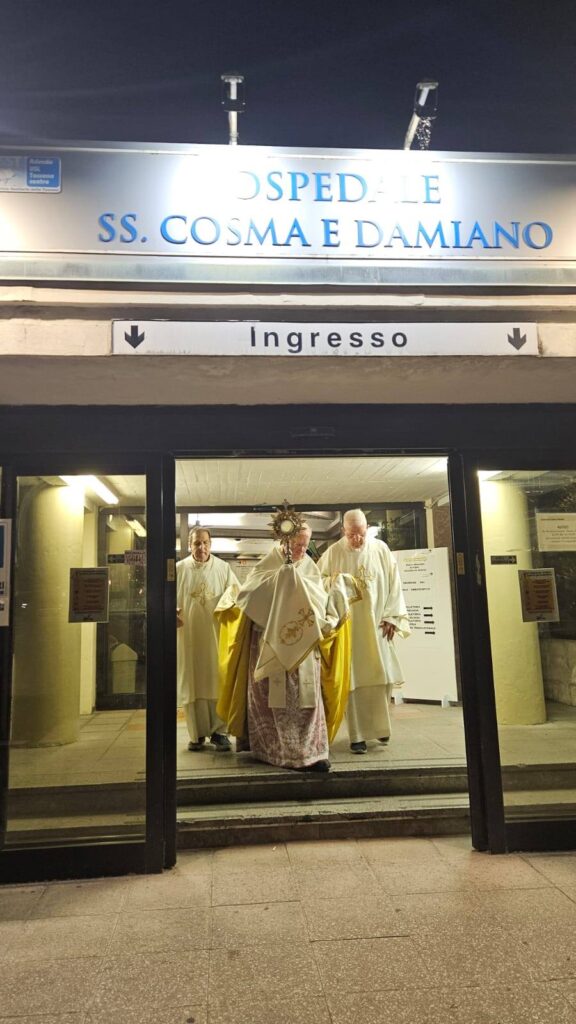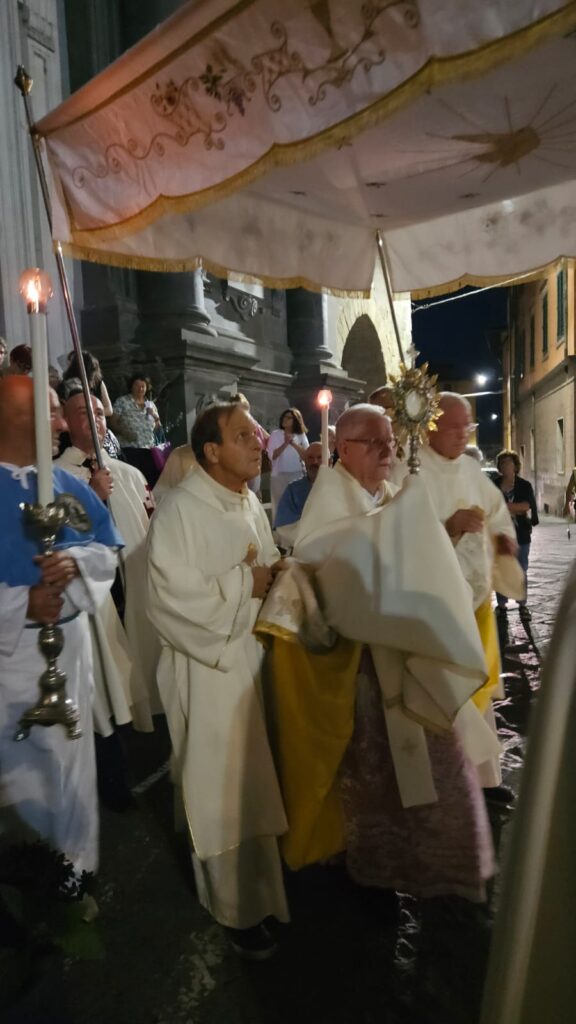Toccante la fermata, della processione, all’Ospedale SS. Cosma e Damiano, dove il Vescovo Fausto si è soffermato in preghiera esponendo il Santissimo nei locali della portineria: un segno tangibile dell’importanza di questa struttura nata più di 250 anni fa, testimonianza anche dell’importante passaggio di Sant’Allucio, fondatore del primo ‘Spedale’ luogo di accoglienza per i viandanti lungo la via tra Firenze e Lucca.