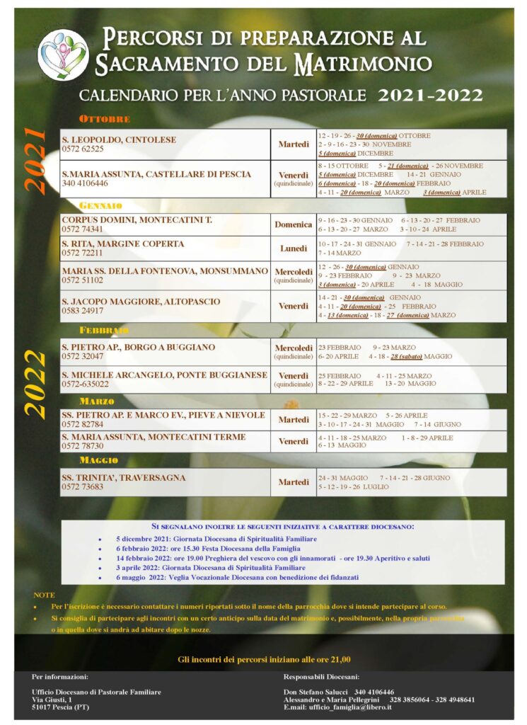 Nuovo calendario: Percorsi preparazione al matrimonio 2021/2022