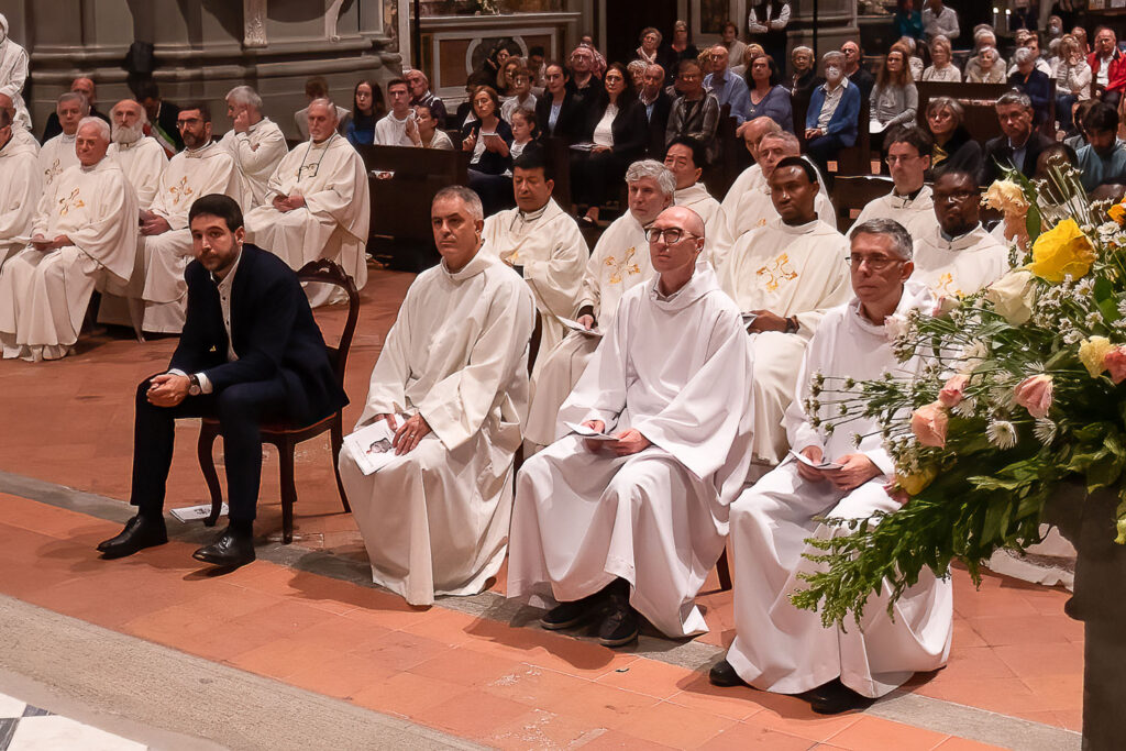 Matteo caro, oggi chiedi alla Chiesa di essere ammesso ufficialmente fra i candidati al Diaconato e al Presbiterato. Da quando, con la presentazione di Don Bruno, sei venuto a comunicarmi che ti sentivi chiamato a consacrarti al Signore nel sacerdozio, hai compiuto una profonda maturazione, prima a Milano nell’itinerario vocazionale e poi nel Seminario Interdiocesano di Pisa. Nella preghiera, nello studio e nella vita comunitaria, ma anche nei primi impegni pastorali, hai preso coscienza, secondo quanto mi hai scritto, che la vocazione è appello alla responsabilità ecclesiale, da assumere umilmente, di fronte agli altri e a Dio, in un processo di spoliazione e di sempre maggiore autenticità. Stasera la Chiesa riconosce la tua crescita cristiana, intercede per te e ti invita a proseguire con gioia il percorso verso il ministero ordinato.
