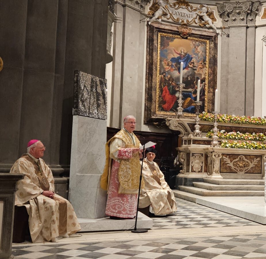 Lasciamoci dunque ungere questa sera dal sacro olio della grazia di Cristo, rinnoviamo con gioia la nostra fede e facciamoci gioiosi e instancabili latori dell’olio della letizia a tutte le persone che vivono tra noi e con noi.